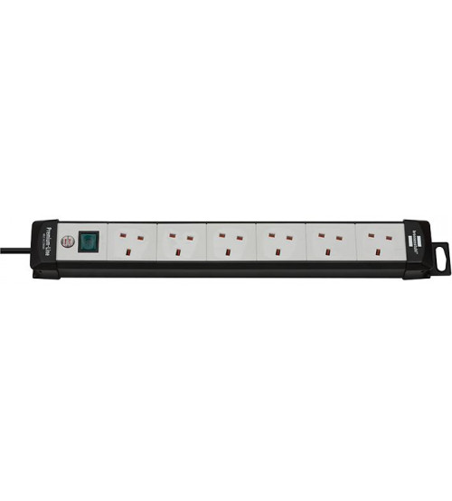 Premium-Line Multi-Way Extension Lead, Black/Grey, 6x Outlets, 5m Cable