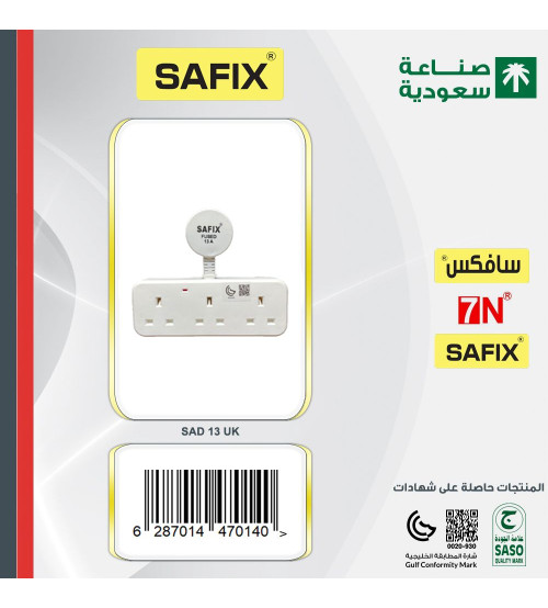 SAFIX SAUDI MADE WHITE POWER DISTRIBUTION 3 SOCKETS, CORDLESS EXTENSION