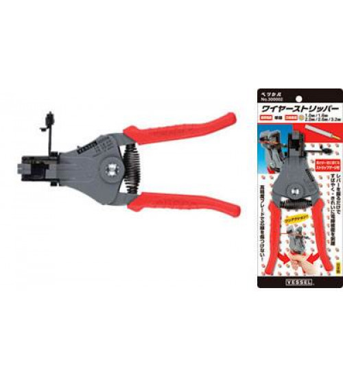 WIRE STRIPPERS 3000B (300002) ●For stripping vinyl sheathing off wire ●Nimbly and cleanly strips off sheathing in a single operation. ●Resin grip comfortably fits the hand to lessen hand fatigue. ●Can be used with wiring for TV, radio, home appliances, electrical work, automotive circuits, telephones, etc. ●Strip gauge provided. ●Barcode labeled |