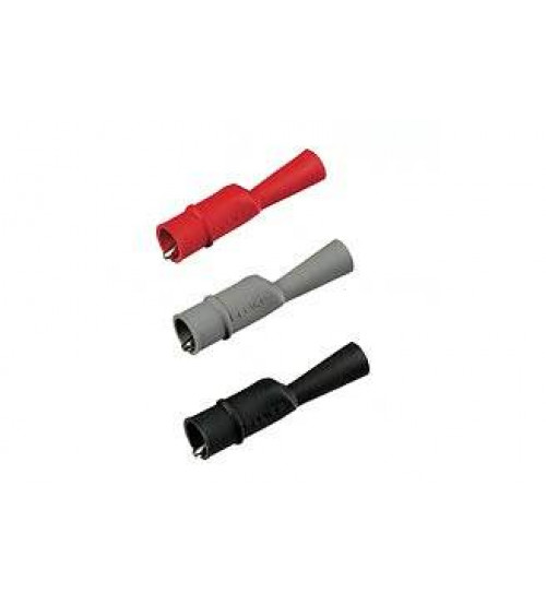 Set of three (one red, one gray, one black) safety designed insulated Probe Tip Alligator Clips. Designed for use with STL 120 Shielded Test Leads and TL75 Test Leads. Accepts standard 0.08 in (2 mm)-pin tip sized test probes. Nickel-plated steel jaw contact material with standard jaw opening of 5/16 in (8 mm).